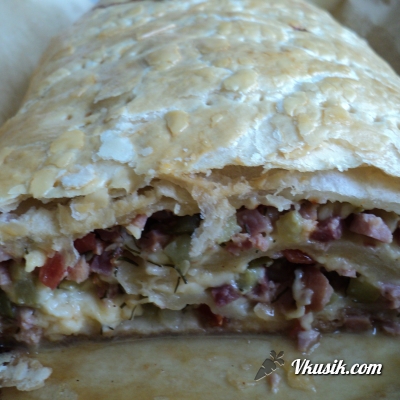 Но можно и замечательно их объединить в одном рулете. Главное - сохранить в рецепте горчицу и маринованные огурчики - именно они создают пикантное очарование этого рулета.