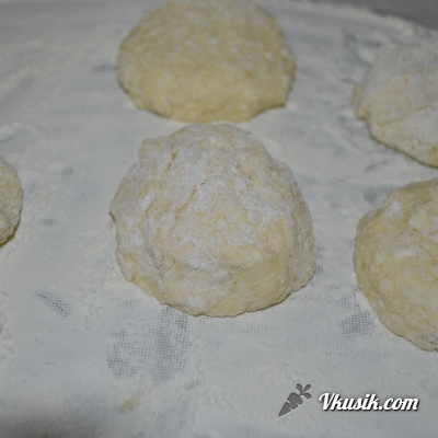 Формируем сырники и обваливаем их в муке, стряхиваем излишки муки,